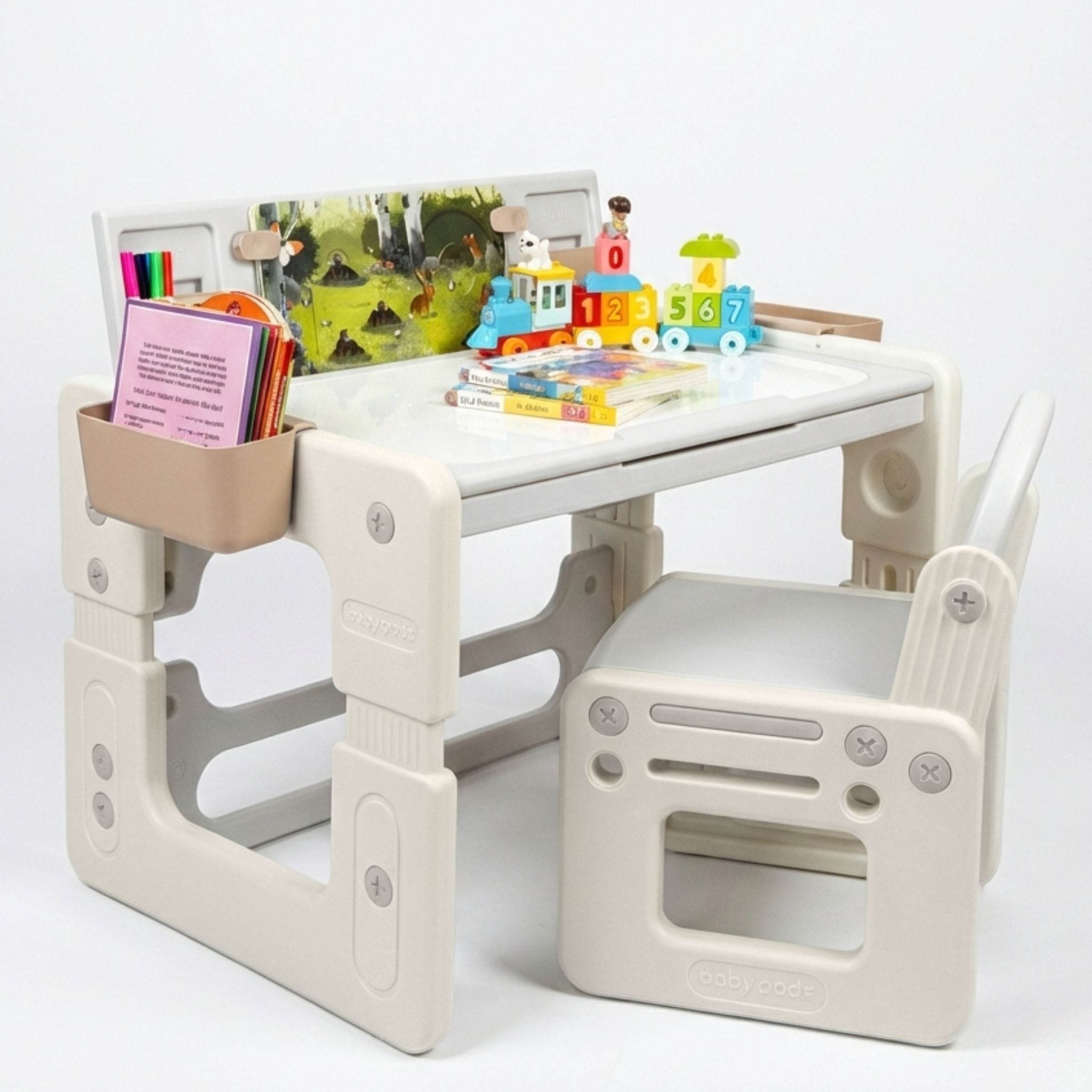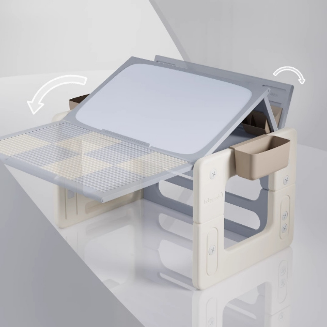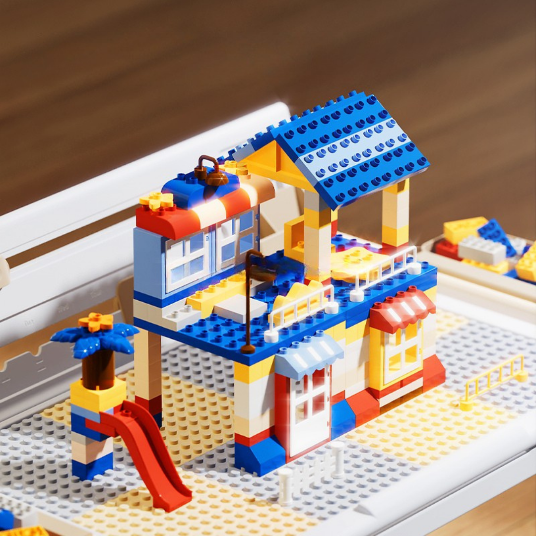 Dołączony do zestawu blat został zaprojektowany z myślą o wszechstronności. Twoje dziecko może na nim rysować, malować, budować z klocków. Każda aktywność ma swoje miejsce: